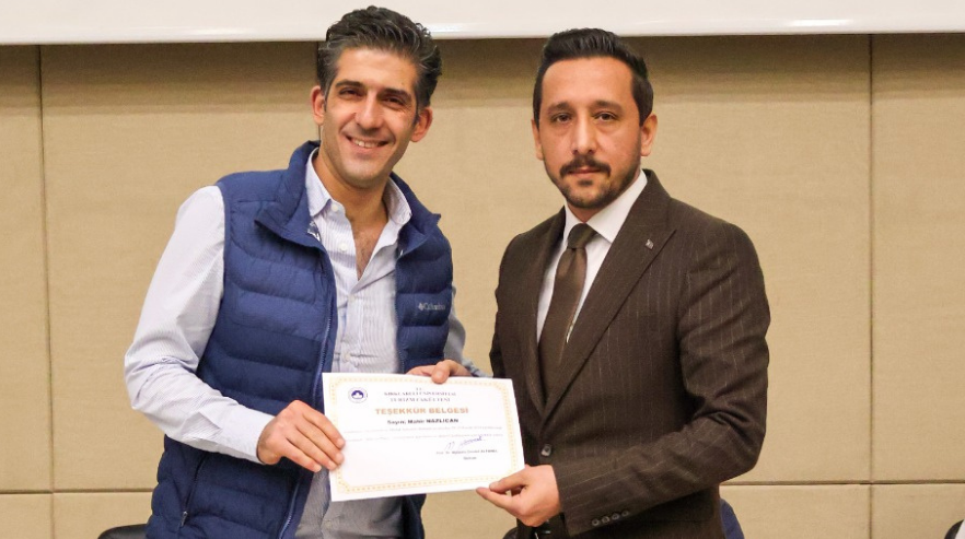 Gazeteci ve CucinaNo75 Gastronomik Deneyim Platformu Kurucusu Esra DÜZDAĞ ATEŞ, Mahir Lokantası Kurucu Şefi Mahir NAZLICAN, Radisson BluResort & Spa Çeşme Hotel Yönetici Pastane Şefi Murat TÜTÜNCÜ, Dessera Restoran Yiyecek-İçecek Müdürü Kemal İMECİ ve Catering Sahibi, Şef ve Danışman Yaşar METE'nin katılımları ile gerçekleştirilen söyleşide, sektörün gastronomi öğrencilerinden beklentileri ve farklı alanlarda çalışmak isteyen gastronomi öğrencilerinin dikkat etmesi gereken faktörler ele alındı. Söyleşi Arş. Gör. Ferda Yeliz ÇUBUK'un yönelttiği soruların ardından öğrencilerin sorduğu sorular ile sona erdi. Söyleşinin ardından fakültemiz Dekanı Prof. Dr. Mustafa Cevdet ALTUNEL, Turizm Fakültesi Dekan Yardımcısı Doç. Dr. Emrullah Tören, Turizm Fakültesi Dekan Yardımcısı Dr. Öğr. Üyesi Mustafa KESİCİ, Gastronomi ve Mutfak Sanatları Bölüm Başkanı Doç. Dr. Bilal DEVECİ ve Turizm İşletmeciliği Bölümü Öğretim Üyesi Prof. Dr. Mehmet Han ERGÜVEN'in değerli katılımcılara teşekkür belgelerini takdim etmeleri ile sona erdi.